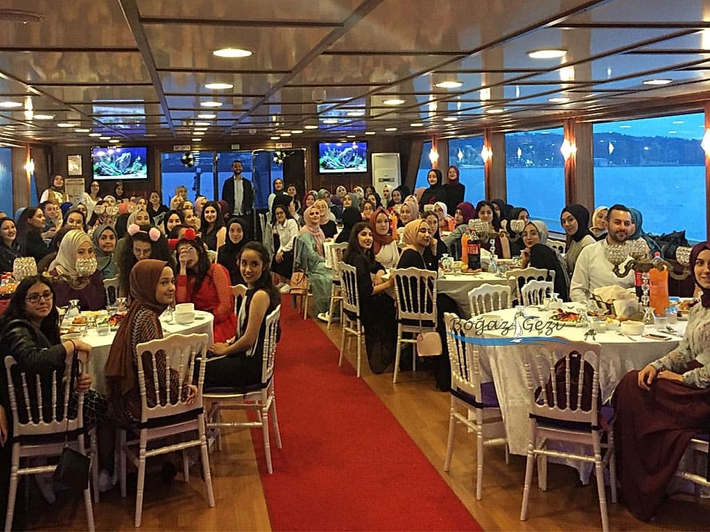 Yemekli tekne turu ile boğazı gezerken aynı anda farklı menülerden birini seçerek göz zevkinizi ile damak zevkinizi aynı anda yaşayabilirsiniz. Hijyen belgeli mutfağımız ve personelimiz ile siz değerli müşterilerimize en iyi şekilde hizmet vermeyi görev olarak kabul etmekteyiz. Bütün yemeklerimiz teknelerimiz de hazırlanmaktadır. Soğuk mezeler ise günlük olarak dışarıdan tedarik edilmektedir. Sadece gruplara ve kişilere özel hizmet vermekteyiz.